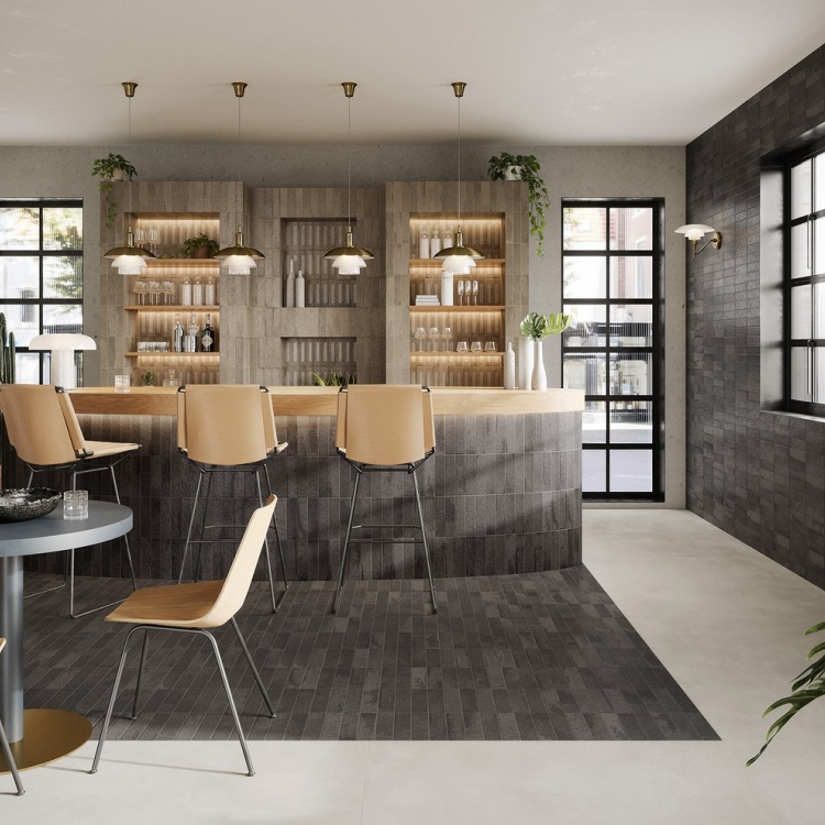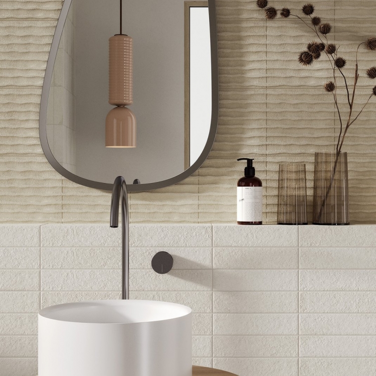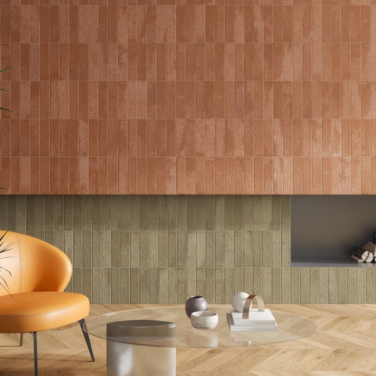 Ploščice imajo neenakomerno, mehko površino, prijetno na otip, ki ujame svetlobo in jo razprši po prostoru, kar ustvarja toplo in dinamično atmosfero. Barvna paleta z nežnimi, toplimi odtenki omogoča personalizacijo najrazličnejših ambientov – od kuhinj do kopalnic – in celo oblaganje ukrivljenih površin in volumnov.
